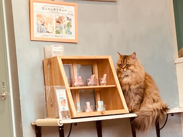おやつを買ったお客さんを見るとスッ…とついてくる猫。