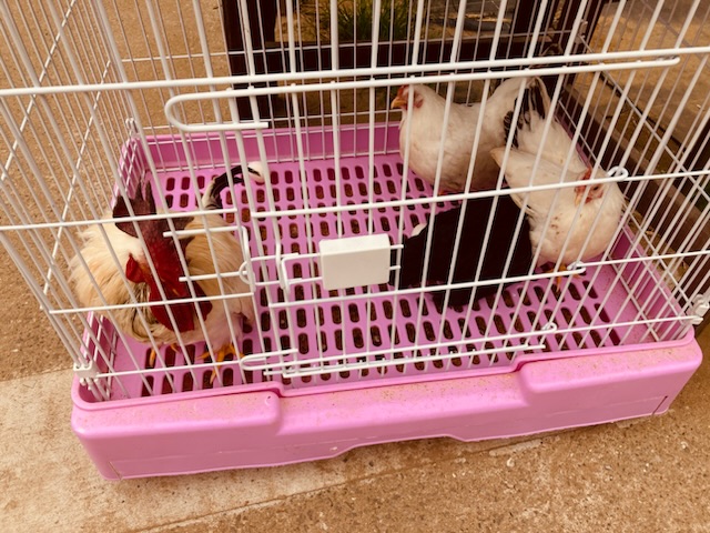 入口にいたニワトリたち。タマゴ産んでた。